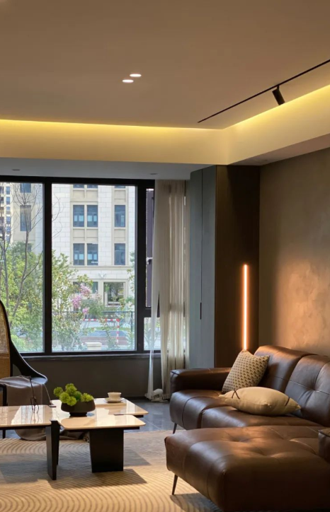 無主燈:無主燈設(shè)計分為基礎(chǔ)照明、重點照明、輔助照明。磁吸軌道燈中的泛光燈可以作為基礎(chǔ)照明,防眩筒燈、射燈、吊燈可以作為重點照明,將我們想要表達的環(huán)境如:壁畫、電視墻、桌面等重點突出。線性燈作為輔助照明,勾勒出空間的層次感,提升視覺上的空間感。